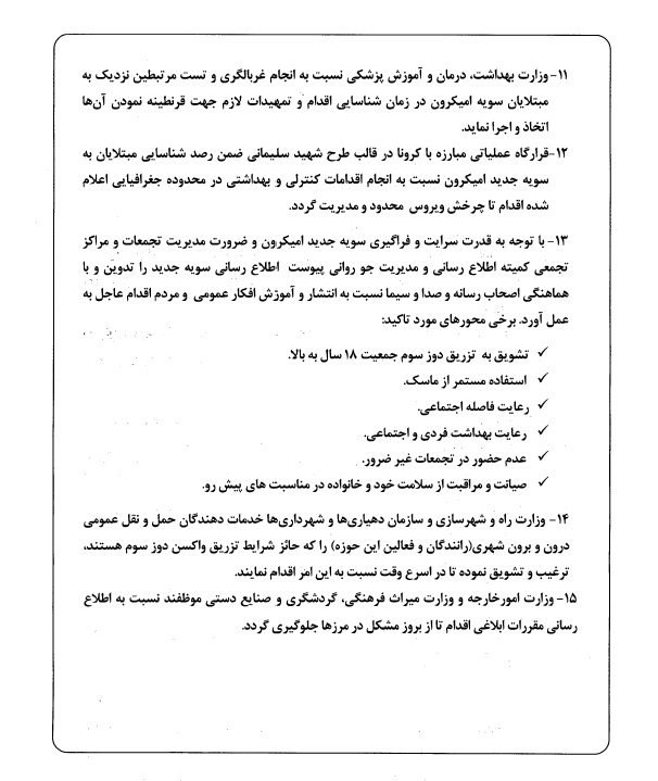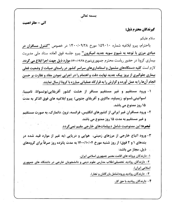 بخشنامه کنترل مسافران با توجه به شیوع سویه جدید او میکرون