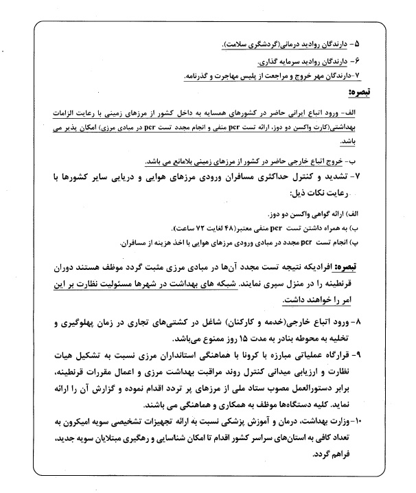 در خصوص پذیرش کارت واکسن کشورهای خارجی